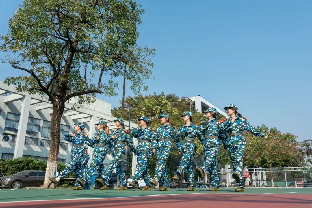 从晨光微露到日头渐高,操场上的我们反复打磨着每一个细节。摆臂的高度、踢腿的力度、踏步的节奏,教官一遍遍纠正,我们一次次练习,哪怕汗水浸湿戎装,哪怕腿脚酸胀发麻,也没有一人松懈。齐步换正步的衔接要丝滑,队列的排面要整齐划一,每一个人都把自己当作集体的一颗小齿轮,努力让整个方阵运转得更流畅。