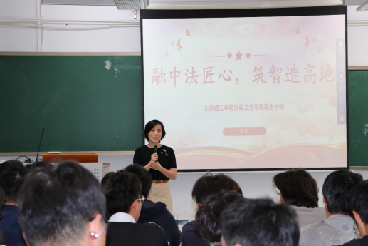 青年学生传承家国情怀、勇担时代使命,将个人成长与国家发展紧密相连,2026 年 3 月 24日,东莞理工学院中法学院党委负责人尹玲面向学院 2025 级全体学生上了 “融中法匠心,筑智造高地” 思政第一课。