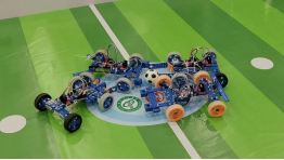 在模拟绿茵的有限场地上,三台机器人协同作战,前锋突进,后卫坚守,每一次传接、每一次拦截,都是智慧与执行力的集中体现。