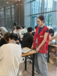 在赛事筹备与现场执行中,学生党员发挥着先锋模范作用,以实际行动践行服务精神,展现出了良好的在组织风貌和责任意识。从签到引导到物资调度,从计时记录到场地维护,学生党员都带领着工作人员与志愿者坚守在赛场的不同岗位中。