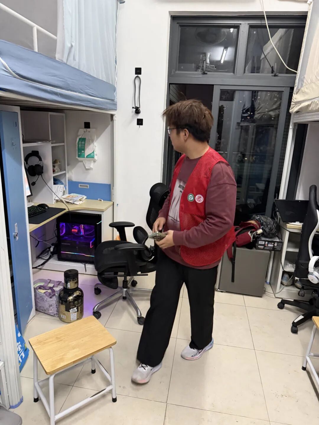 志愿者们细致排查、严格把关,用责任与坚守筑牢校园安全防线,切实保障同学们的校园居住安全,为新学期校园安全稳定保驾护航,践行了“安全第一、预防为主”的责任理念。